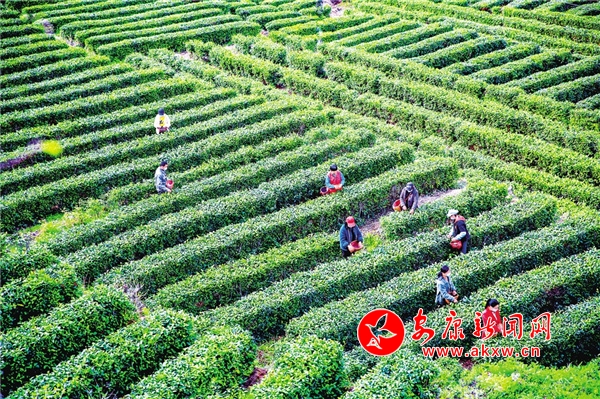 近年來,白河縣卡子鎮(zhèn)發(fā)展茶園面積近1300畝,帶動當(dāng)?shù)?20余戶200余人,實現(xiàn)戶均增收2000元以上。圖為近日,茶農(nóng)趁著濃濃春意在卡子鎮(zhèn)東壩桂花村茶園忙碌著。
