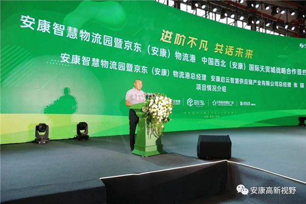 安康智慧物流園暨京東(安康)物流港總經理、啟云智慧供應鏈產業(yè)有限公司總經理張 國介紹合作項目情況。他表示,項目全面運營后,將有效提高安康物流業(yè)智慧化、信息化、科技化水平,補齊安康物流園區(qū)設施短板,推進物流產業(yè)和區(qū)域經濟實現更有效率、更高質量、更可持續(xù)的快速發(fā)展。