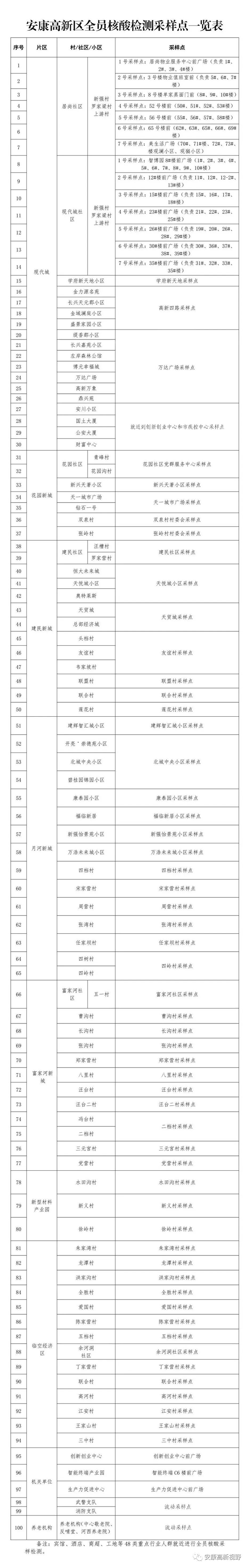 附件:安康高新區(qū)全員核酸檢測采樣點(diǎn)一覽表