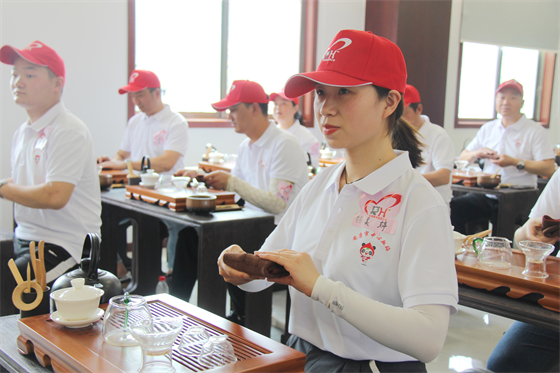 在隨后的炒茶和茶藝課上,大家更是興趣濃厚,在老師們耐心細(xì)致地講解引導(dǎo)下,大家一步一步動手親為,在舒緩的音樂聲和高雅的氛圍中感受著茶文化的熏陶。