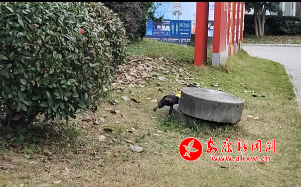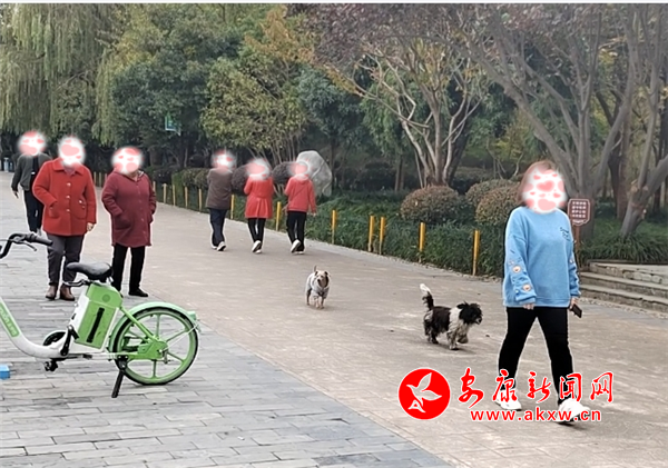 11月8日下午,興安公園小廣場內(nèi)有市民遛狗未牽繩,寵物犬綠地隨意便溺。(圖文/周薇)