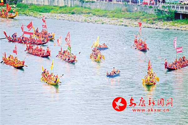 安康雖屬陜西三秦大地,但因漢水與長(zhǎng)江一脈相承,帶有水鄉(xiāng)楚文化的賽龍舟,使秦風(fēng)楚韻相映交融。