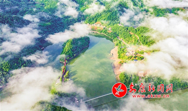 穿過密林,移步水邊,小島早已與一汪碧水融為一體,綠瑩瑩的水環(huán)繞著小島,島以水為鏡,水以島為景。此時(shí)的小島猶如一位漂亮的村姑,靜靜地欣賞著水中的倩影。汪汪碧水、陣陣?guó)B鳴、悠悠藍(lán)天,讓人不自覺地?cái)柯暺翚?,生怕打亂這寧?kù)o風(fēng)景,那就只好用心去感受欣賞了。