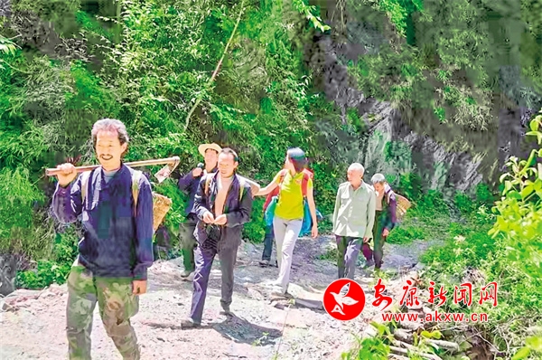 央視編導(dǎo)與向?qū)?、采藥人出發(fā)。黎盛勇 攝
