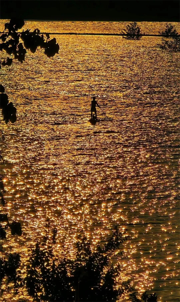金色的夕陽映照在水中