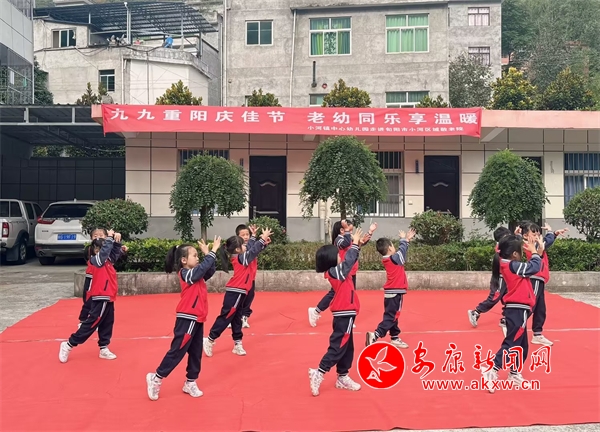 為弘揚(yáng)中華民族尊老敬老的傳統(tǒng)美德,培養(yǎng)幼兒尊老、敬老、助老、愛老的美好品質(zhì),在重陽(yáng)節(jié)來臨之際,10月10日,旬陽(yáng)市小河鎮(zhèn)中心幼兒園組織孩子們,走進(jìn)小河區(qū)域敬老院,開展“九九重陽(yáng)慶佳節(jié),老幼同樂享溫暖”實(shí)踐活動(dòng)。活動(dòng)中,孩子們?yōu)闋敔斈棠太I(xiàn)上了精心準(zhǔn)備的歌舞表演,老人們和孩子們一起系上大紅綢,扭起秧歌來,大家一起進(jìn)行了有趣的游戲。孩子們用稚嫩的動(dòng)作,甜美的笑容,給老人們平淡的生活里帶去了歡樂。(通訊員 劉曉玲 李冬梅)?