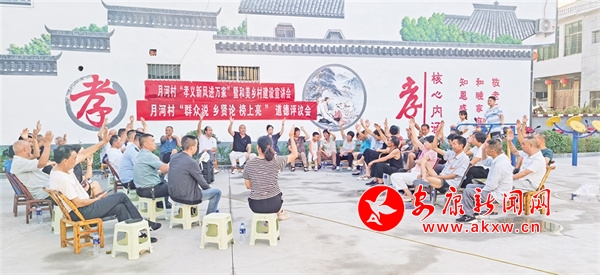 在今年的每一次道德評(píng)議會(huì)上,月河村干部和鄉(xiāng)賢能人都積極宣講村莊發(fā)展規(guī)劃以及孝善行為的重要性,宣講團(tuán)成員詳細(xì)解讀孝義文化,帶動(dòng)村民踴躍參與“五美庭院”創(chuàng)建。在此過程中,“說論亮”道德評(píng)議制度有效運(yùn)行;“群眾說”讓大家暢所欲言,把村里的大小事擺到臺(tái)面;“鄉(xiāng)賢論”借助鄉(xiāng)賢的智慧與威望分析問題、化解矛盾;“榜上亮”則讓好與壞一目了然,便于群眾監(jiān)督。特別是,為激勵(lì)村民見賢思齊,學(xué)典型、爭(zhēng)先進(jìn)、樹文明,月河村利用孝義文化長(zhǎng)廊、宣傳欄、道德講堂等載體,把評(píng)選出來的道德典型事跡“上榜、上墻”,形成示范引領(lǐng)效應(yīng),讓良好道德品質(zhì)看得見、摸得著,進(jìn)一步激發(fā)村民的主人翁意識(shí),讓移風(fēng)易俗的觀念深入人心。