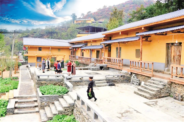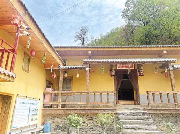 藍(lán)天、白云、清風(fēng)、朗日、松林……一切慵懶舒適得剛剛好。一路盤繞,繞道幾彎桃紅柳綠、野花盛開(kāi)的山道,掠過(guò)桃紅李白郁郁蔥蔥的樹林,周家院子便毫無(wú)征兆地映入眼簾。隔墻遠(yuǎn)瞧,院內(nèi)房屋呈L形鋪展開(kāi)來(lái),房梁上懸掛的金黃色玉米穗、燦若紅霞的辣椒展示著農(nóng)家物產(chǎn)豐饒的鄉(xiāng)野特色,犁彎、犁脖、犁鏵,述說(shuō)著院子主人的勤勞與殷實(shí)。而一串串醒目的大紅燈籠,展示著主人的幸福生活和對(duì)未來(lái)的美好憧憬。