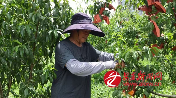 同樣迎來收獲的還有城關(guān)鎮(zhèn)的黃桃,在城關(guān)鎮(zhèn)龍嶺村的黃桃種植基地,連片的桃樹郁郁蔥蔥,金燦燦的黃桃壓彎了枝條,空氣中彌漫著誘人的桃香?;刎?fù)責(zé)人劉宏正忙著采摘,臉上洋溢著燦爛的笑容,他一邊采摘一邊介紹道:“我們這個(gè)桃園有金鳳黃桃、黃金黃桃、秋彤桃和冬桃四個(gè)品種,一共有9畝多,從6月中旬到10月左右,陸續(xù)都有成熟的桃子。”