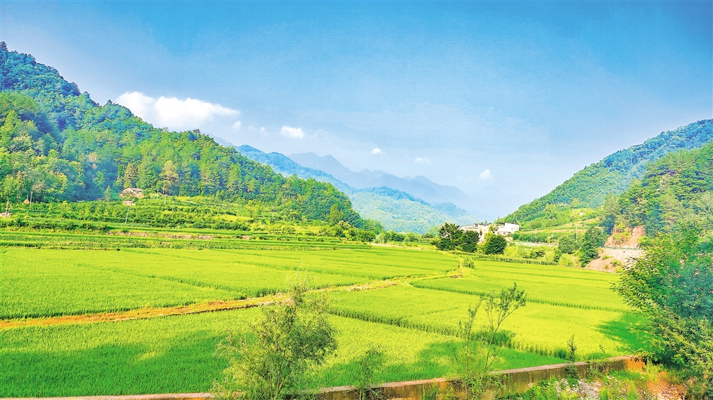 盛夏,旬陽(yáng)市雙河鎮(zhèn)卷棚村,稻田、村莊、青山相映成趣,和美鄉(xiāng)村風(fēng)光如畫(huà)。潘文進(jìn) 攝