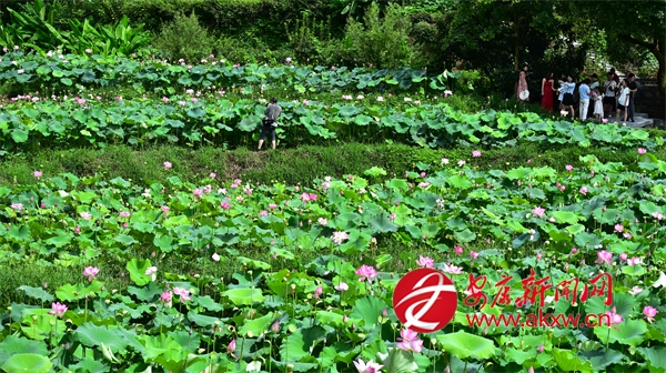 連日來,平利縣廣佛鎮(zhèn)余家灣百畝荷塘花開爭艷,引得游人或駐足細品荷韻,或輕倚棧道拍攝留影。王韜 攝?