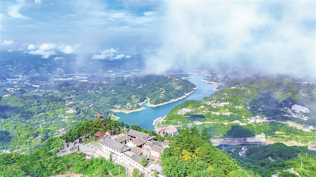 8月14日清晨,站在瀛湖風(fēng)景區(qū)內(nèi)遠(yuǎn)眺,遠(yuǎn)山、村莊相互映襯,風(fēng)景如畫。趙華斌 攝