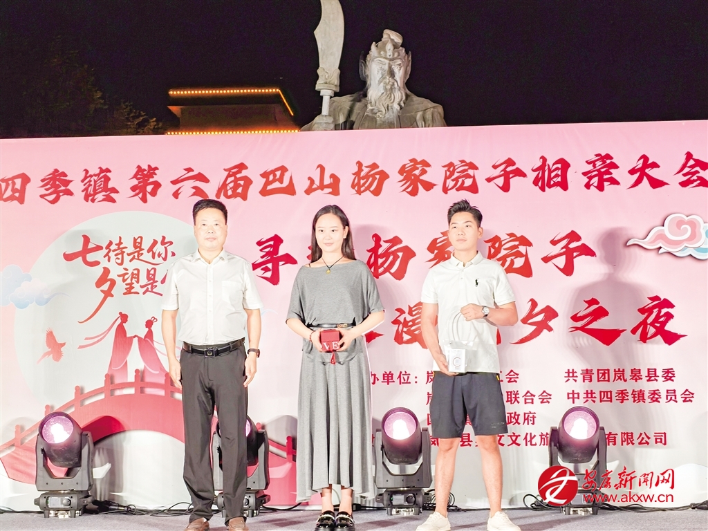本網(wǎng)訊(通訊員 向秋如 余倩)8月29日晚,嵐皋縣四季鎮(zhèn)楊家院子省級旅游度假區(qū)燈火璀璨、笑語盈盈,由該縣總工會、團(tuán)縣委、縣婦聯(lián)、四季鎮(zhèn)聯(lián)合主辦的第六屆“尋夢楊家院子 浪漫七夕之夜”相親活動浪漫啟幕。