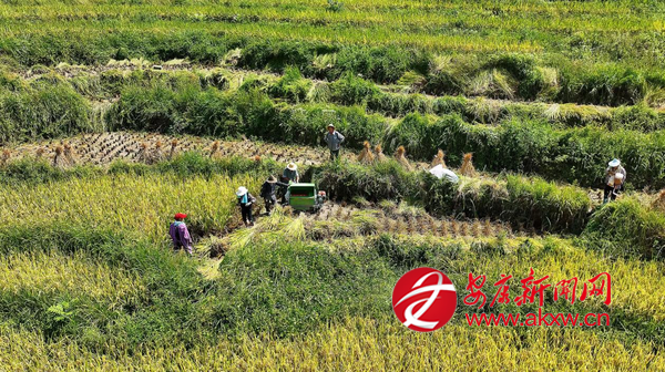 金秋時(shí)節(jié),漢陰縣鳳堰梯田景區(qū)迎來了一年中最動(dòng)人的季節(jié)。層層疊疊的梯田上,稻穗低垂、金黃遍野,農(nóng)戶們穿梭其間,描繪出一幅忙碌而喜悅的豐收畫卷。(通訊員 文婷)