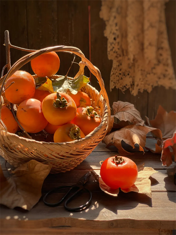 火紅的柿子妝點著秋景