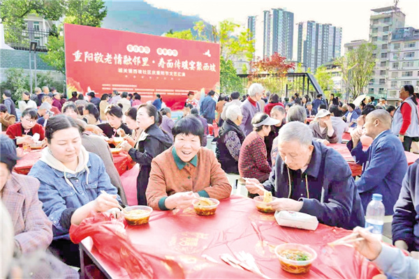 10月28日,嵐皋縣城關(guān)鎮(zhèn)西坡社區(qū)舉辦了“重陽(yáng)敬老情融鄰里·壽面?zhèn)髋缇畚髌隆敝黝}活動(dòng)。廖霖 攝