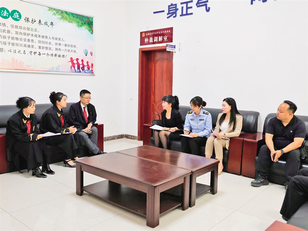 高新法庭特邀人大代表、政協(xié)委員、市場監(jiān)管工作人員及科創(chuàng)園企業(yè)代表走進法庭,聯(lián)合開展調解工作。趙永佳 攝