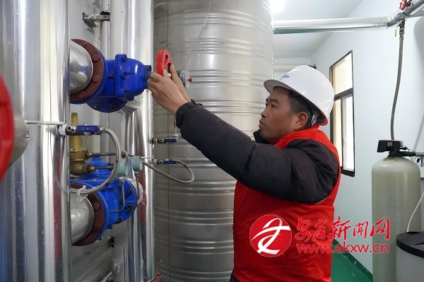 11月17日,寧陜城投熱力有限公司工作人員正在調試供暖設備。