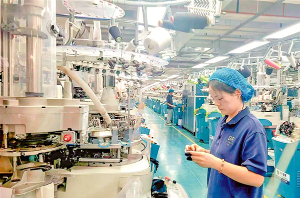 智能織襪工廠生產(chǎn)線一角