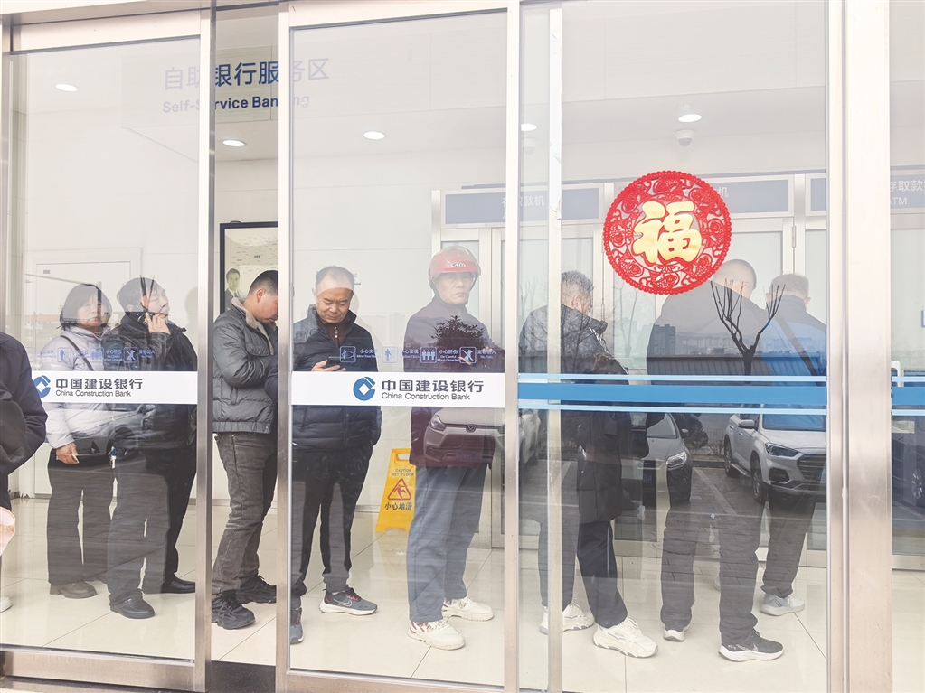 ④ 2月15日,漢濱區(qū)江北大道一家24小時自助銀行里,取錢的市民排起了長隊。秦 英 攝
