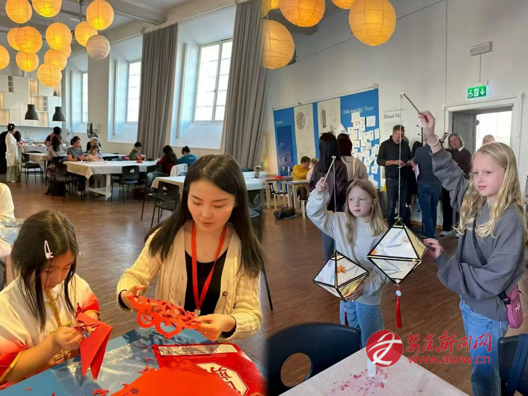 2025年中秋節(jié),在哥德堡市立博物館的展廳里,邱萌教當?shù)睾⒆觽冏鰺艋\、剪剪紙。她和孩子們一起用宣紙折疊成燈籠,讓瑞典人得以近距離觸摸中國節(jié)日。有人好奇地問起中秋的月亮,她便講起嫦娥奔月的傳說,講起月餅的寓意,講起“千里共嬋娟”的詩句。博物館里點亮了許多盞燈籠,每一盞都映照著孩子們專注而好奇的臉龐。