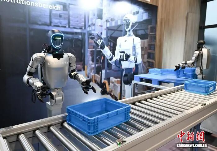 資料圖:宇樹科技人形機(jī)器人模擬流水線生產(chǎn)場(chǎng)景。中新社記者 王剛 攝