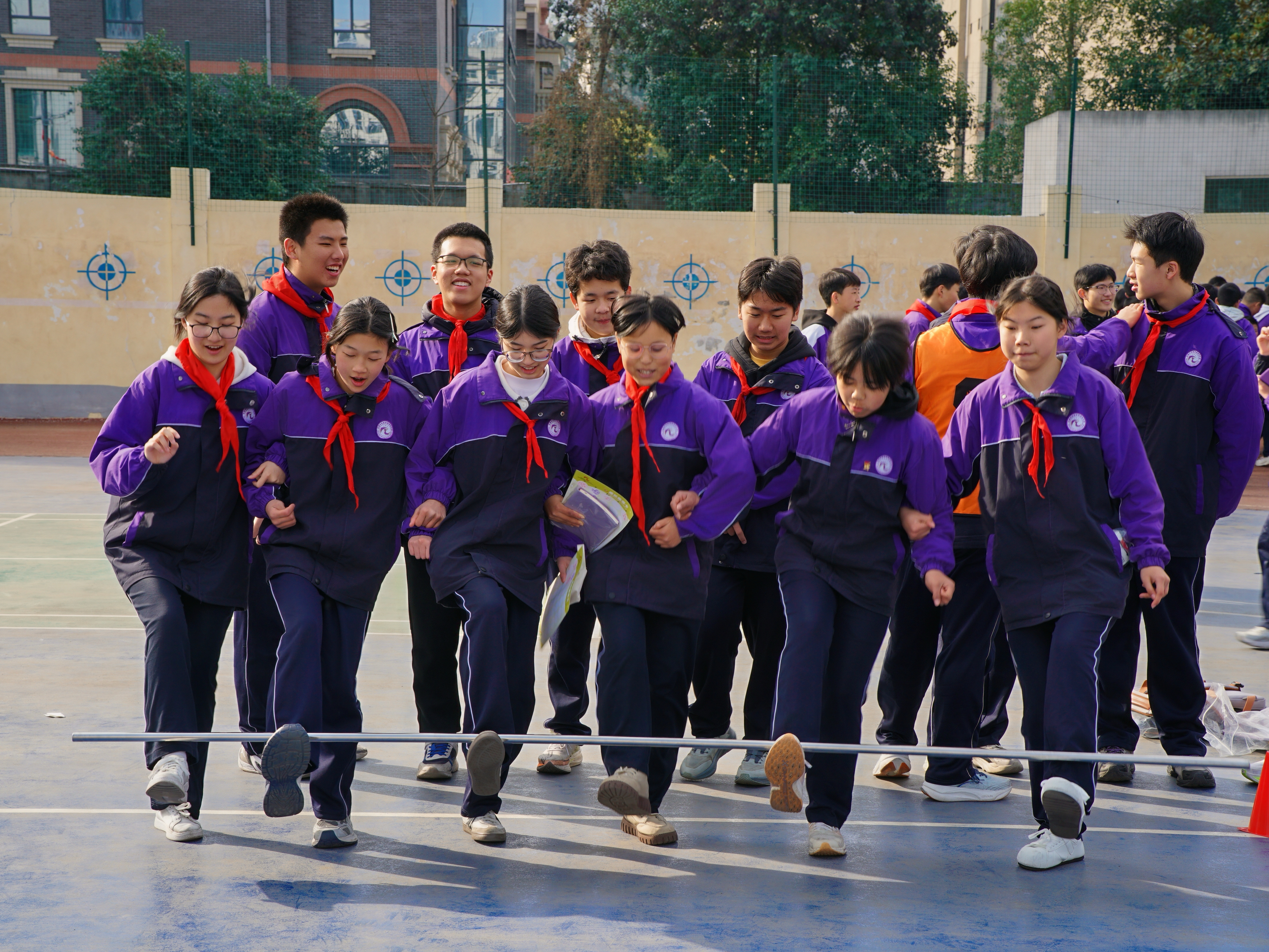 △ 安康中學(xué)教育集團(tuán)初中部游園會活動中,學(xué)生們參加協(xié)作跳躍項(xiàng)目。馬黎明 攝