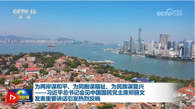央視網(wǎng)消息(新聞聯(lián)播):4月10日,中共中央總書記習(xí)近平在北京會(huì)見鄭麗文主席率領(lǐng)的中國國民黨訪問團(tuán)并發(fā)表重要講話。習(xí)近平總書記著眼中華民族整體利益和長遠(yuǎn)發(fā)展,提出“堅(jiān)持以正確認(rèn)同促進(jìn)心靈契合、堅(jiān)持以和平發(fā)展守護(hù)共同家園、堅(jiān)持以交流融合增進(jìn)民生福祉、堅(jiān)持以團(tuán)結(jié)奮斗實(shí)現(xiàn)中華民族偉大復(fù)興”的重要論述,為推動(dòng)兩岸關(guān)系發(fā)展進(jìn)一步指明了前進(jìn)方向、提供了重要指引??倳浀闹匾v話在海內(nèi)外引發(fā)熱烈反響。